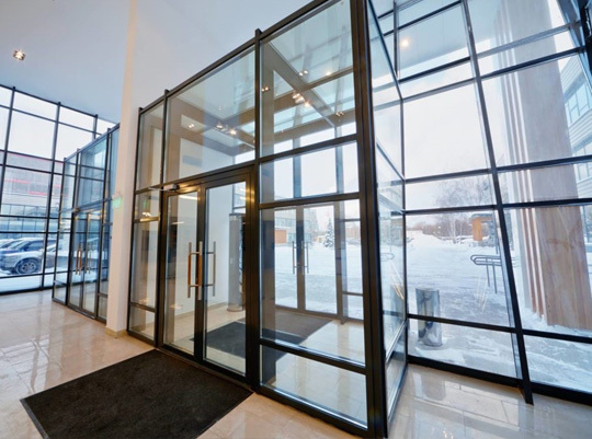 01. Офісні перегородки Glass Construct з алюмінієвого профілю чудово виглядають. Вертикальні та горизонтальні перемички мають меншу товщину (т. до. алюміній більш міцний ніж пластик матеріал). Конструкція виходить візуально легшою та ажурною. Фарбуються в будь-який колір із палітри RAL.