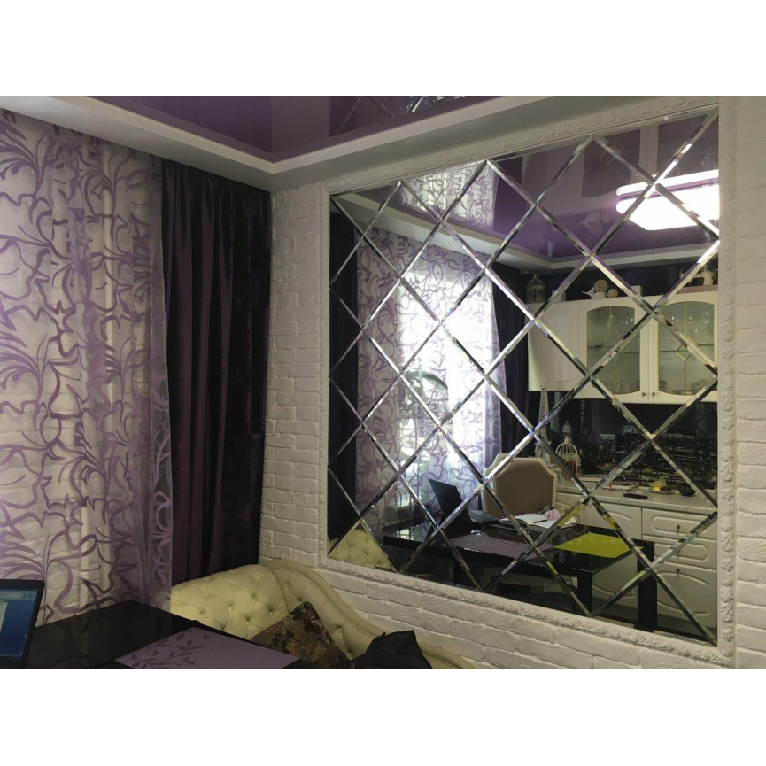 Дзеркальне панно чудово виглядають в сучасному інтер'єрі і можуть стати модною деталлю будь-якого приміщення, привертає заломленням світла через грані обробленої кромки додає нотки витонченості і смаку в будь-який інтер'єр.