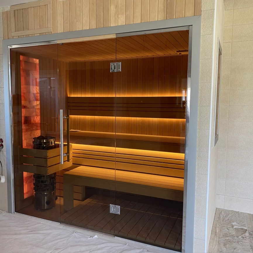 У конструкції скляних перегородок в сауну вирішальними є вузли кріплення і зазори. У парній деревина “живе”, змінює розміри через температуру і вологість, тому перегородка в сауну Iznájar має правильні компенсації, щоб не створювати напруження у склі та спеціальну обробку кромок і коректний монтаж, щоб скло не контактувало з металом без прокладок.