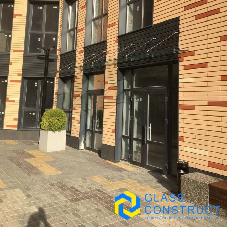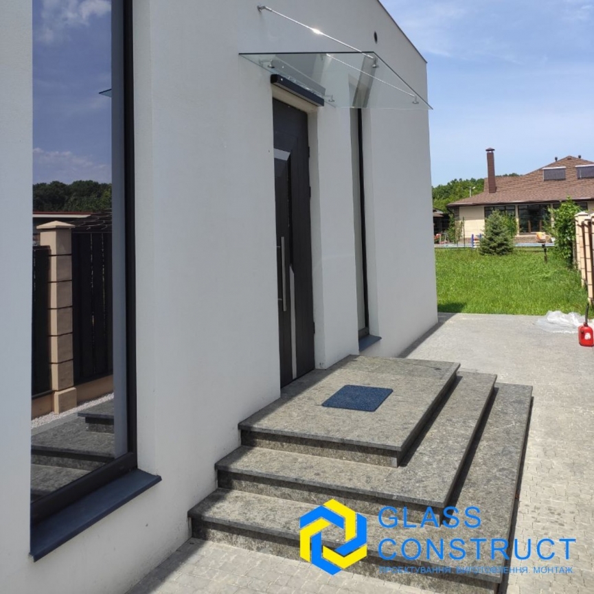 Скляний навіс виглядає дуже презентабельно і здатна справити враження на вашого гостя, клієнта, покупця або відвідувача. Скло створює ефект легкої прозорої невагомості і здатне перетворити зовнішній вигляд вхідної групи самого звичайного будівлі, підкресливши і виділивши його серед інших подібних.