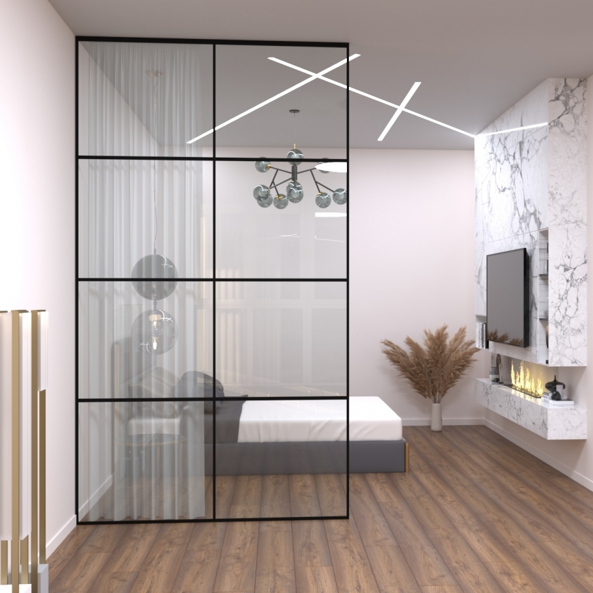 Зонування приміщення за допомогою перегородок ексцентричних лофт, що не навантажують простір, затребуване в офісах, тамбурах, квартирах, спальнях, ванних і душових. Ними можна розділити простір невеликих розмірів, при цьому заощадити корисну житлову площу, або внести витончений декор в великі приміщення - бари, торгові майданчики, готелі, мансарди, фото-студії. Лофт перегородки не перешкоджають проникненню світла, підкреслюють індивідуальність інтер'єру і не "тиснуть", як бетонні або гіпсокартонні стіни
