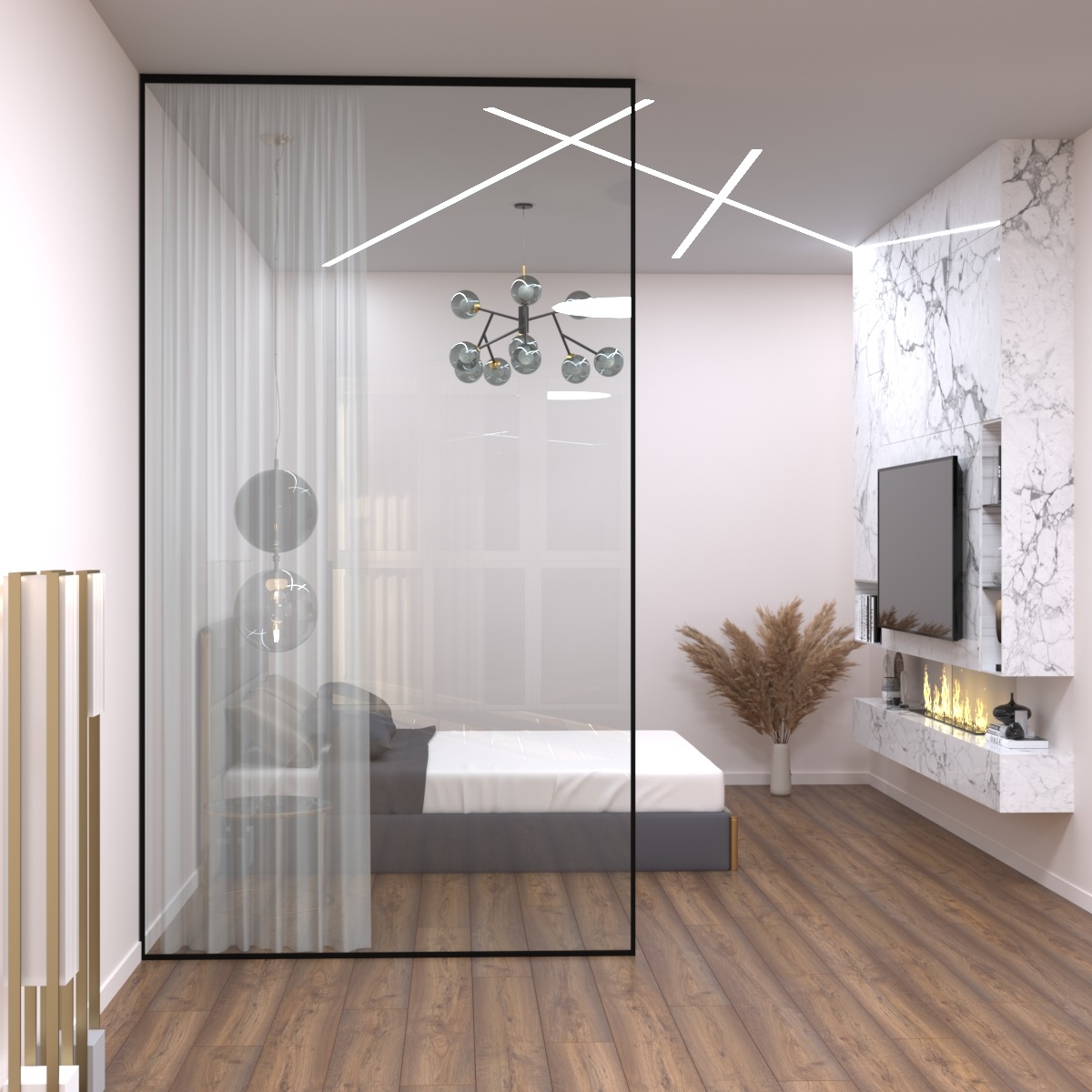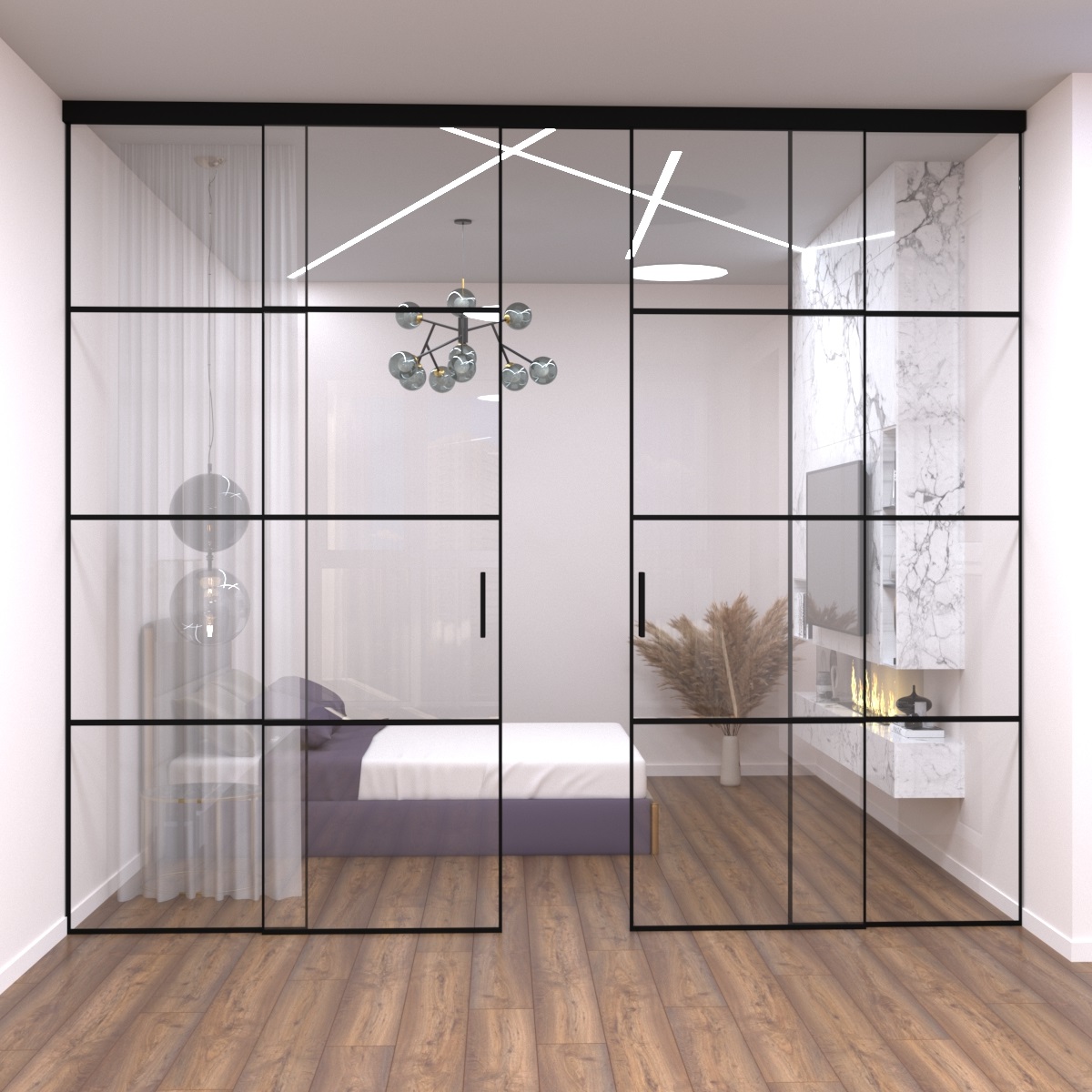 Зонування приміщення за допомогою перегородок ексцентричних лофт, що не навантажують простір, затребуване в офісах, тамбурах, квартирах, спальнях, ванних і душових. Ними можна розділити простір невеликих розмірів, при цьому заощадити корисну житлову площу, або внести витончений декор в великі приміщення - бари, торгові майданчики, готелі, мансарди, фото-студії. Лофт перегородки не перешкоджають проникненню світла, підкреслюють індивідуальність інтер'єру і не "тиснуть", як бетонні або гіпсокартонні стіни