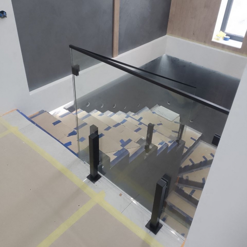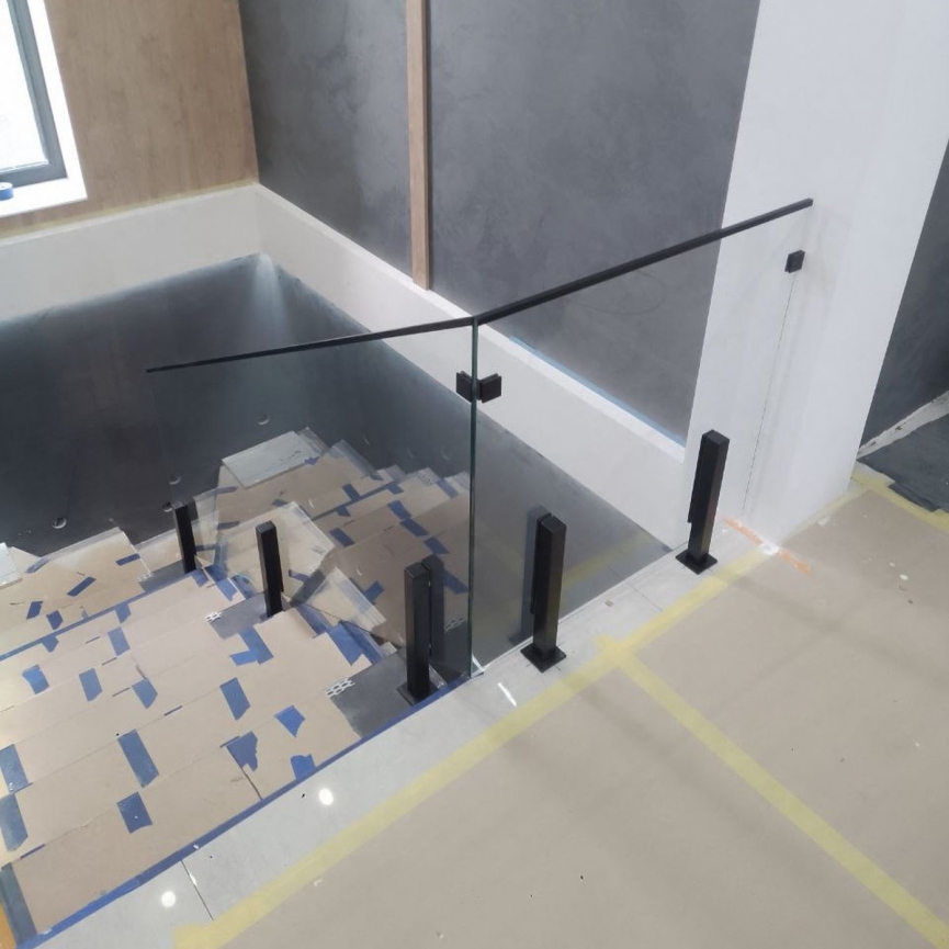 Loft Toledo — прозоре скляне огородження на чорних стійках 400 мм для сходів
