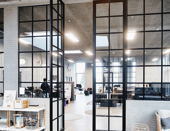04. Можно сделать перегородки в стиле лофт на заказ, увеличив звукоизоляцию отделенной зоны. Это достигается за счет использования двухкамерного стеклопакета и дополнительного контура уплотнителя.