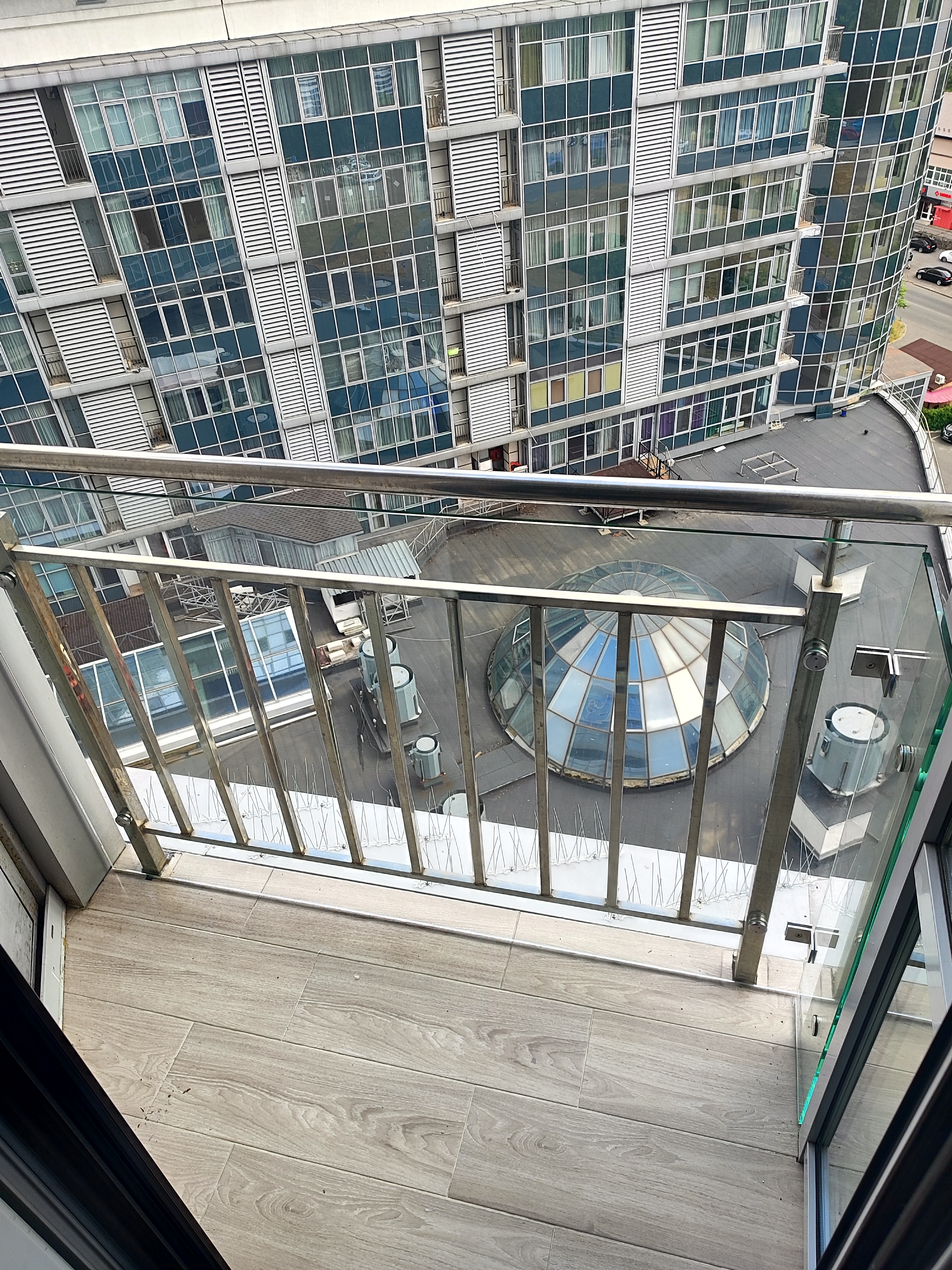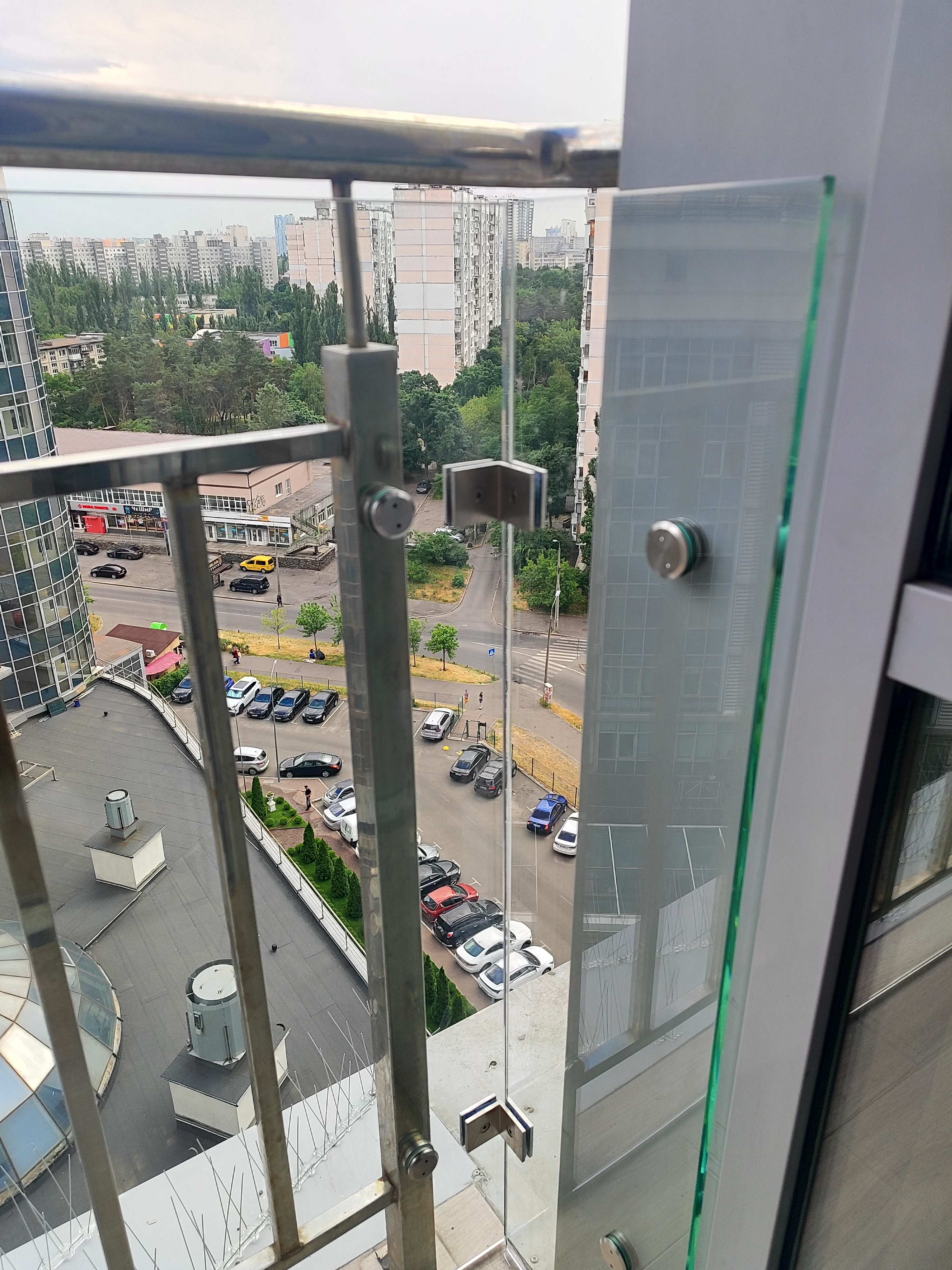 У системі використовується прозоре загартоване скло товщиною 8–12 мм, яке проходить термічне гартування й має підвищену ударостійкість. Таке скло не мутніє, не жовтіє з часом і пропускає максимум природного світла, що важливо для балконів та лоджій у сучасних будинках. Прозорість створює ефект відкритого простору, а огородження виглядає легким і дорогим навіть при міцному каркасному виконанні.