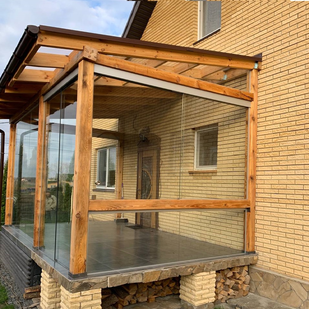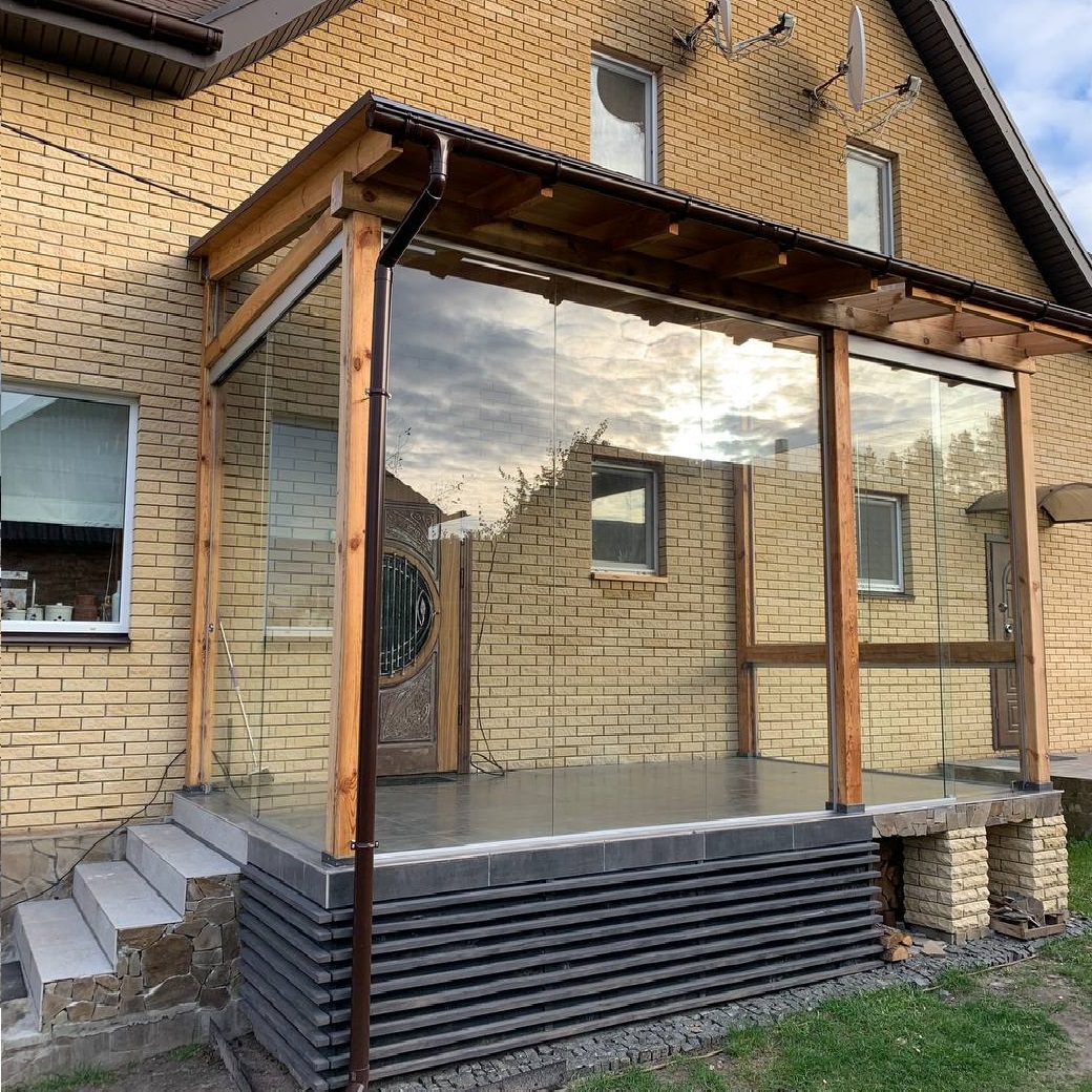 Також багато замовлень у Києві стосуються часткового скління: лише однієї чи двох стін, залишаючи дах відкритим або навпаки - монтують скляний дах, що робить простір придатним для використання навіть узимку. Ми враховуємо усі побажання клієнтів, пропонуємо індивідуальні рішення, які відповідають умовам конкретного об’єкта, включаючи несучу здатність дерев’яних конструкцій, вентиляцію, рівень освітлення та навантаження.
