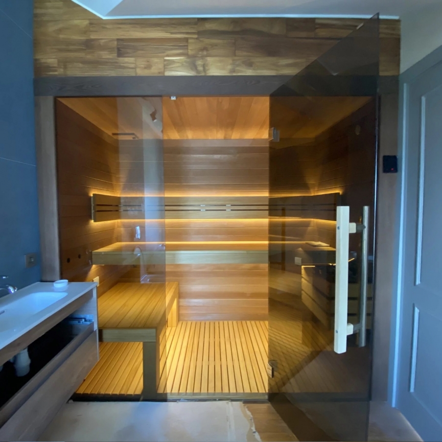 Скляні стіни Osuna — це панорамне, естетичне та безпечне рішення для сучасних саун. Використовується термостійке загартоване скло, яке витримує постійний вплив високої температури, вологості та пари.