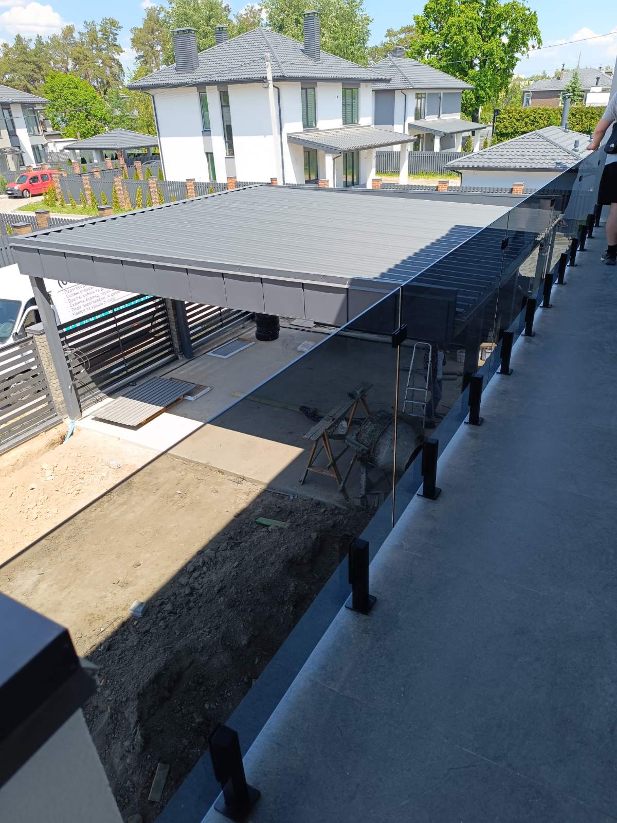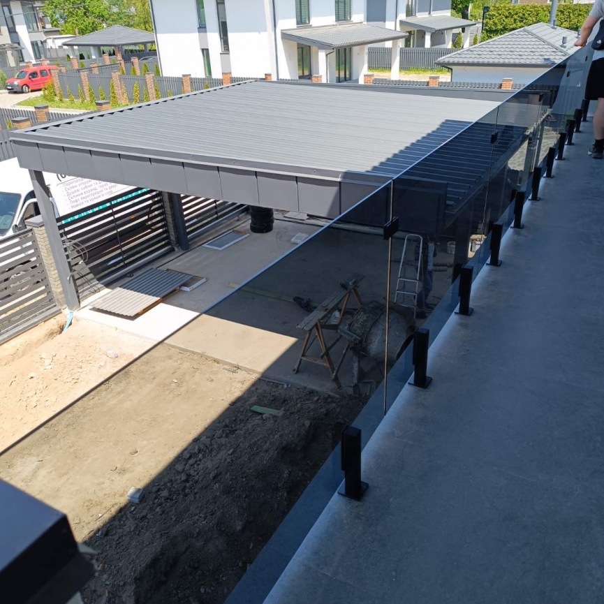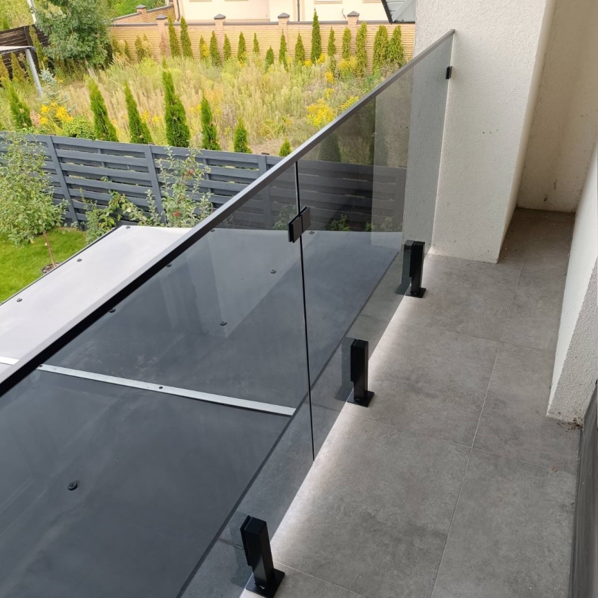 Скло використовується загартоване, товщиною 8–12 мм, стійке до ударів, вітру, опадів і перепадів температур. Завдяки гартуванню воно має підвищену міцність, а при пошкодженні не утворює небезпечних великих уламків. Це особливо важливо для балконних огороджень, де безпека має першочергове значення.