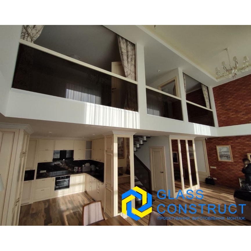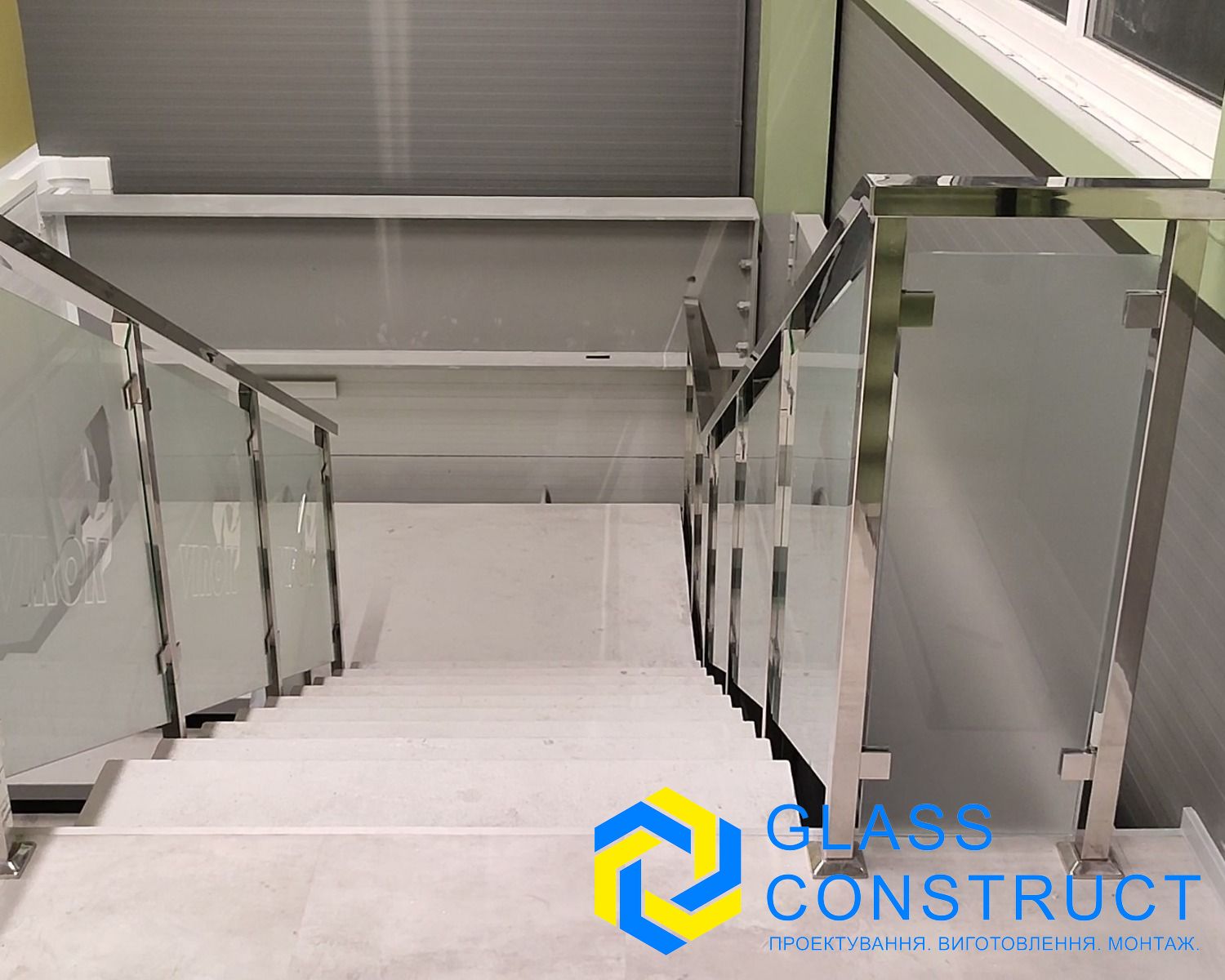 Скляні огорожі з безпечного скла. Використовуються для огородження сходових маршів і прольотів. Можливе виготовлення за індивідуальним дизайном.