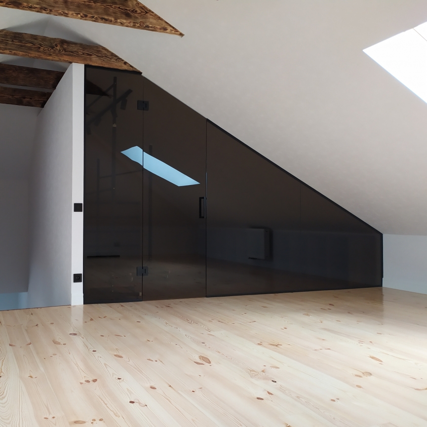 Loft перегородка Sabiote – графитовое стекло, двойная, для гардеробной под мансарду