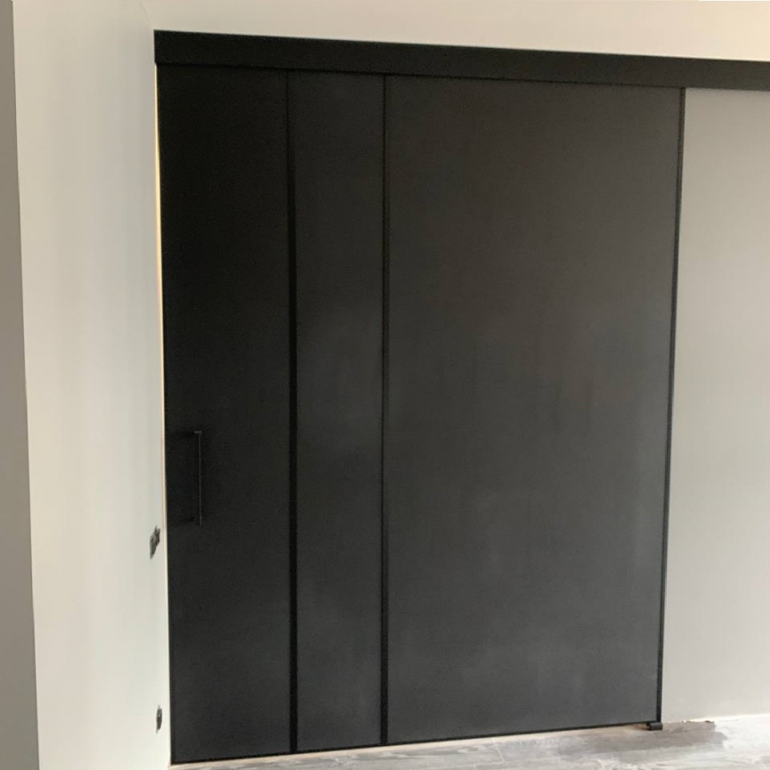 Раздвижная дверь Montoro — стекло графит-матовый, импосты, верхний подвес, крепление на стену