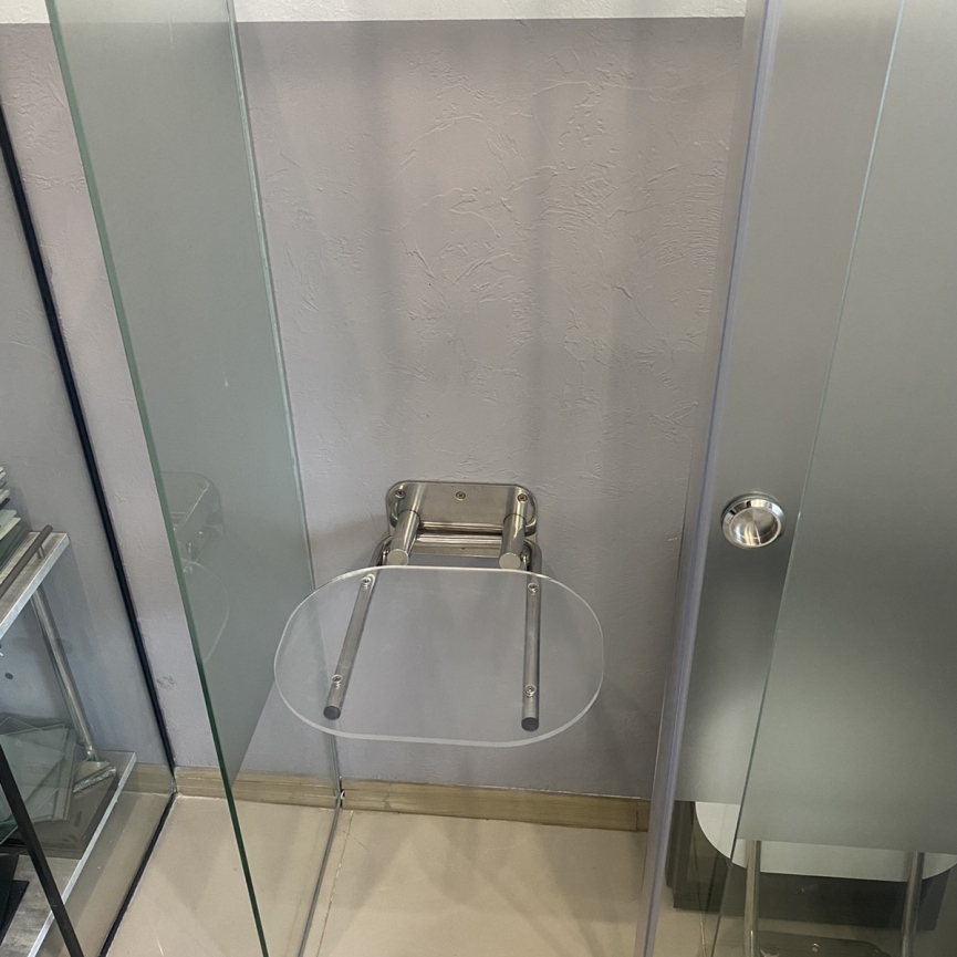 Это сиденье позволяет сэкономить пространство в душевой и при этом комфортно принимать душ.