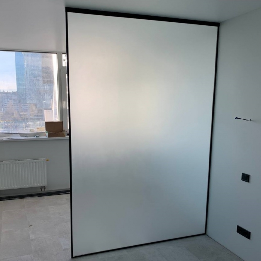 Стационарная матовая перегородка из закаленного стекла 10 мм в чёрном профиле Oropesa