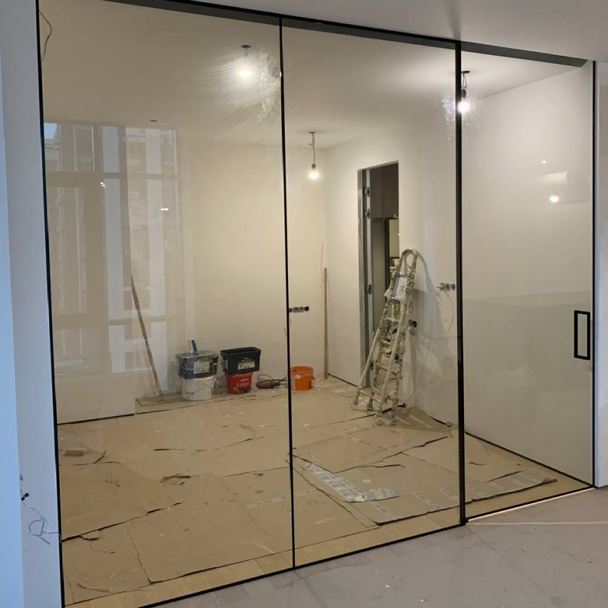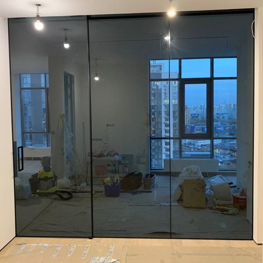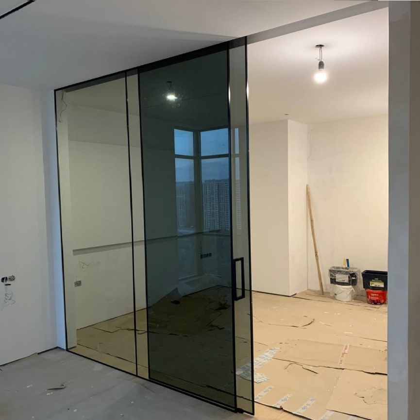 Трёхсекционная перегородка Cariñen — стеклографит, верхний подвес, закалённое стекло