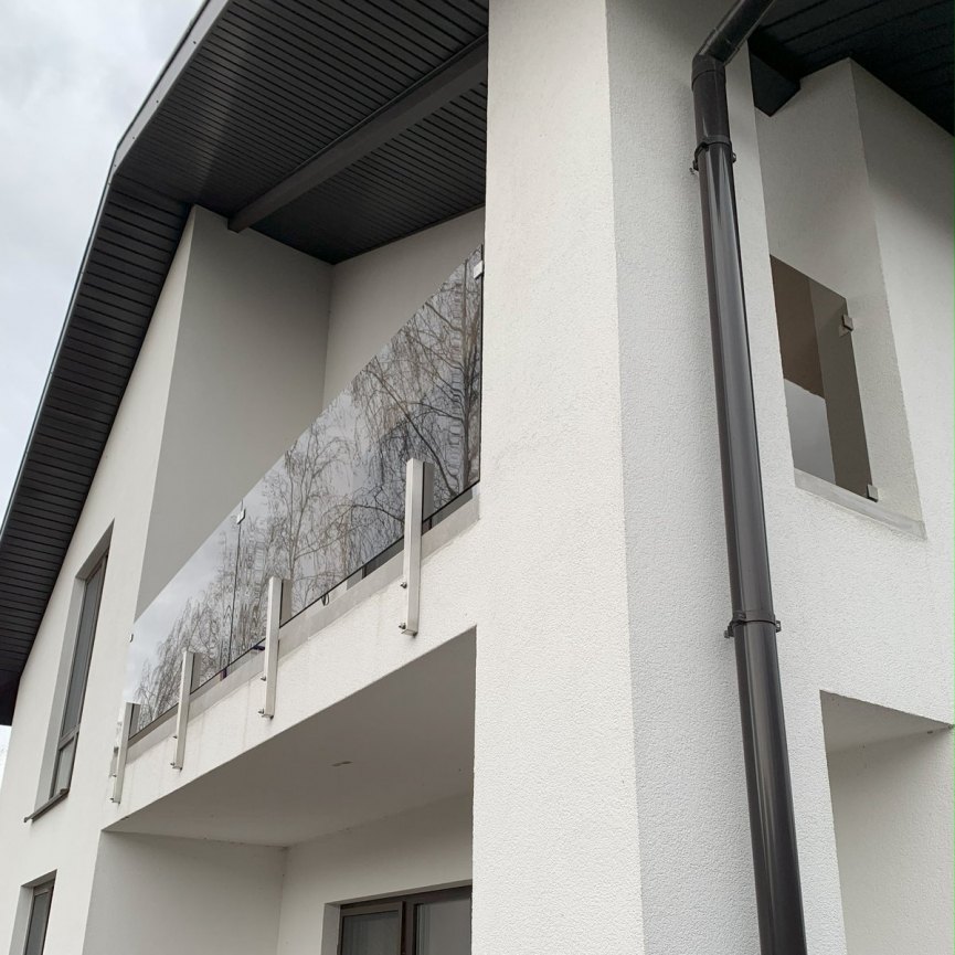 Главная особенность изделия — выносные стойки, которые крепятся на торец балконной плиты, а не на её горизонтальную поверхность. Такое решение обеспечивает максимальную открытость пространства, освобождает полезную площадь пола и делает ограждение визуально лёгким и минималистичным. Сами стойки выполнены из нержавеющей стали, что гарантирует стойкость к нагрузкам, долговечность и защиту от коррозии.