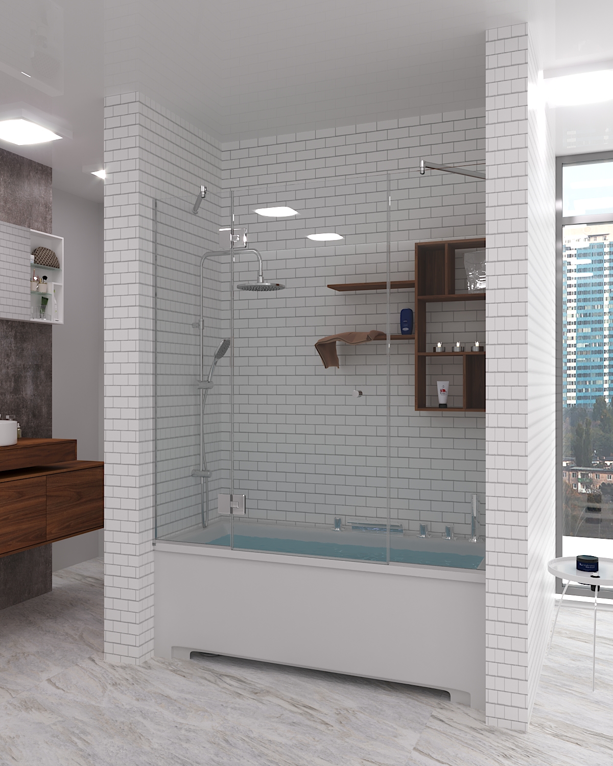 Шторка для ванної з стекла Bristol складається з трьох основних частин: двох бічних стінок і орних дверей. Особливість такої конструкції дозволяє зробити з ванною повністю ізольовану і відокремлену зону.