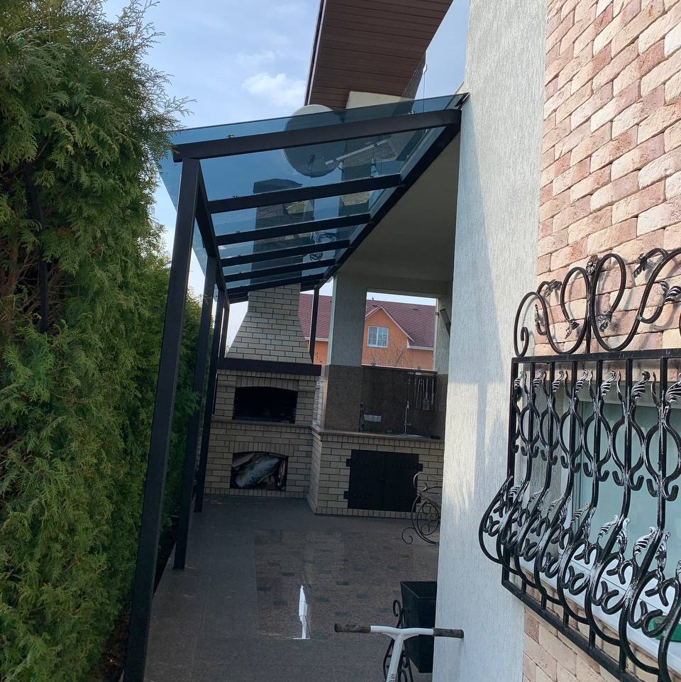 Скляний навіс, козирок зі скла, дах скляний з металокаркасом № 016020