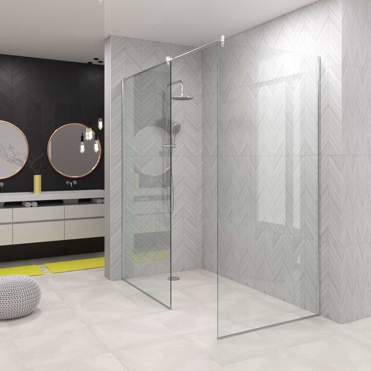Душова кабіна Rimini-це оригінальне виконання для вашої ванної кімнати. Якісні матеріали і міцне кріплення забезпечують надійність і довговічність конструкції. Виріб не тільки відрізняється відмінною якістю, але і стильними зовнішніми даними. Мінімалістичний дизайн скляної душової кабіни прекрасно впишеться в будь-який інтер'єр.