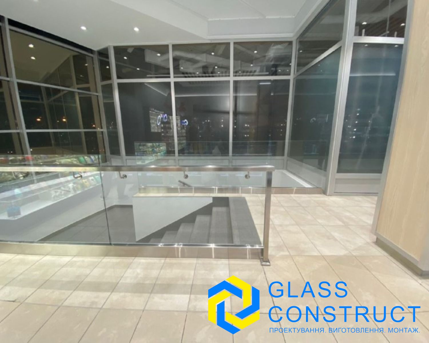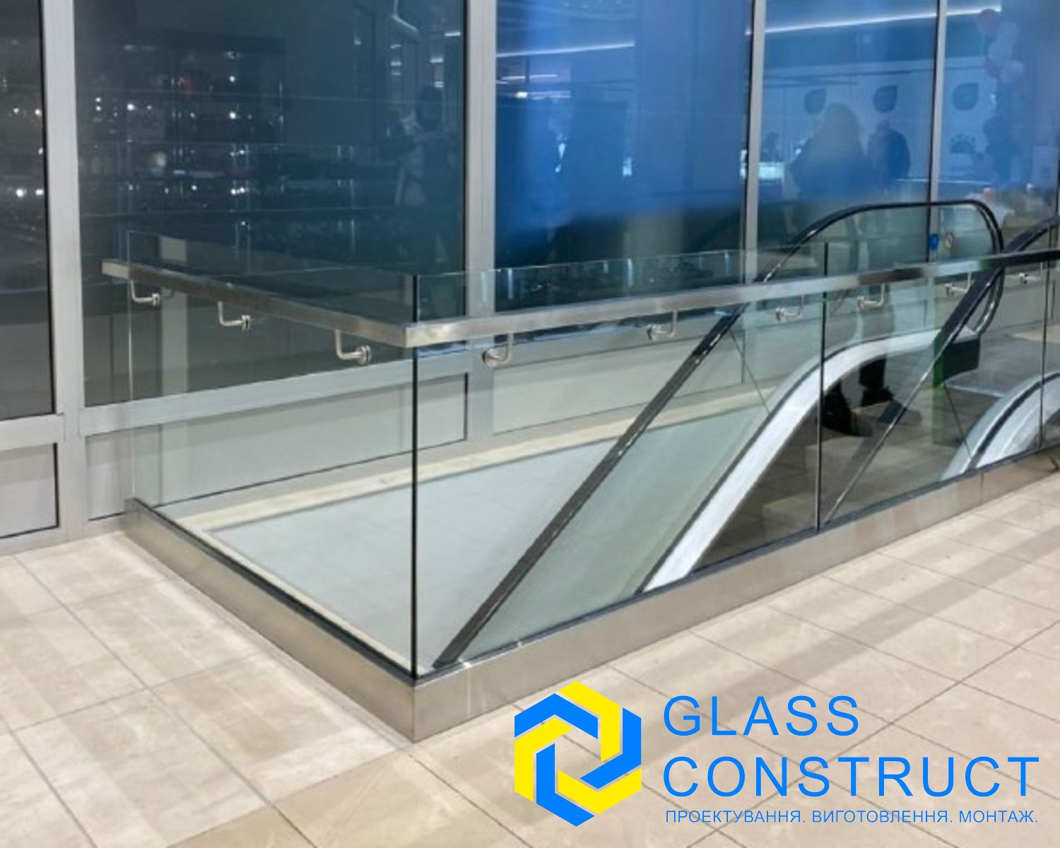 Скляні огорожі з безпечного скла. Використовуються для огородження сходових маршів і прольотів. Можливе виготовлення за індивідуальним дизайном.