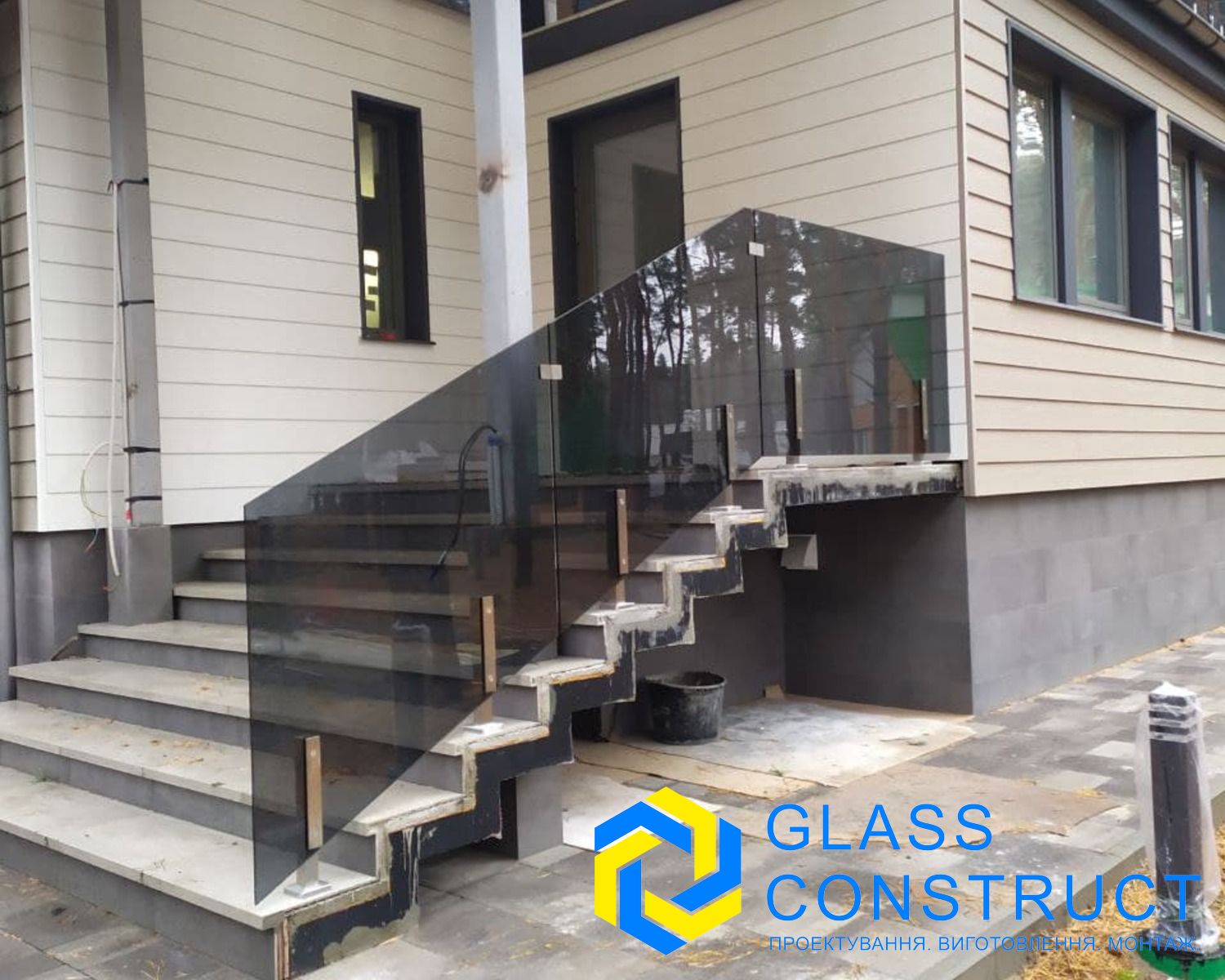 Скляні огорожі з безпечного скла. Використовуються для огородження сходових маршів і прольотів. Можливе виготовлення за індивідуальним дизайном.
