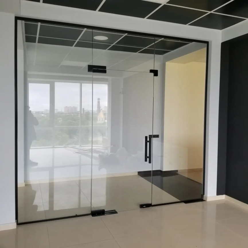 Конструкція перегородки надійна і міцна, оскільки вся фурнітура є високої якості і має відповідні сертифікат. Загартоване скло з товщиною 8 мм, витримує великі навантаження і підходить навіть для приміщень з високою прохідністю. Добре захищає від зайвого шуму.