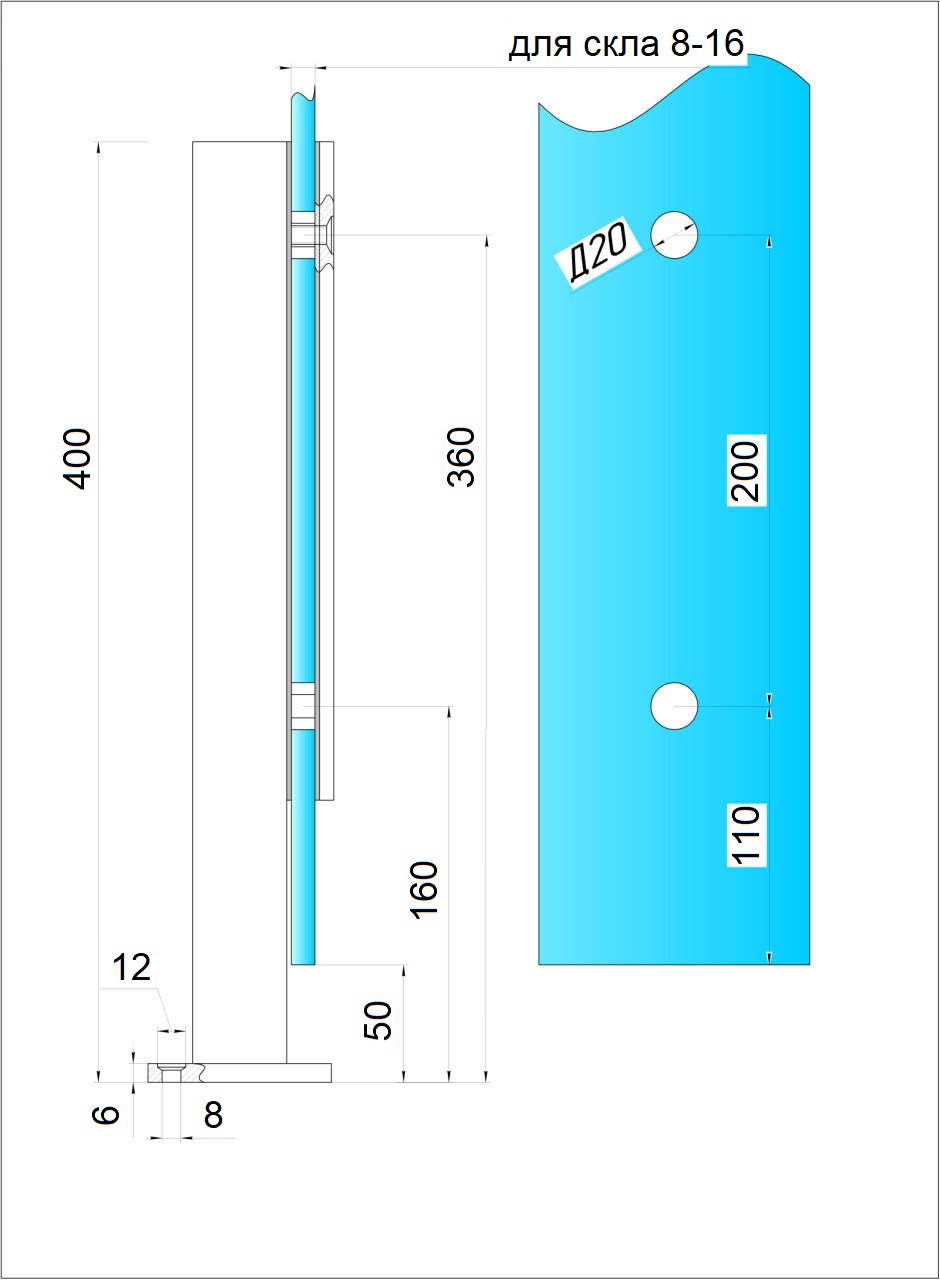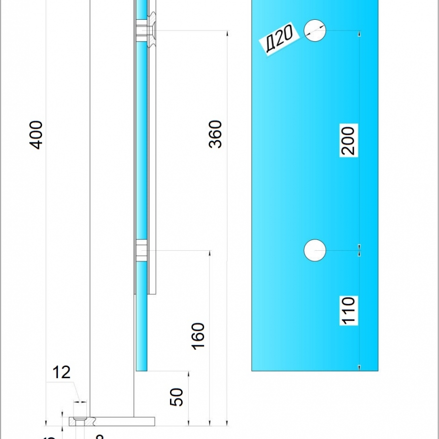 Стійка для скла 400 мм. Black