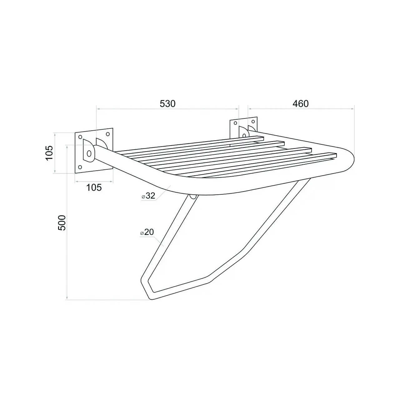 Сидіння в душ. Відкидне сидіння. З нержавіючої сталі.