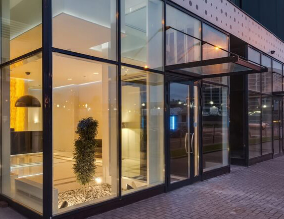 04. Скляні тамбури виглядають надзвичайно стильно, здатні стати справжньою ексклюзивною прикрасою об'єкта, підкреслити особливості архітектурного стилю.